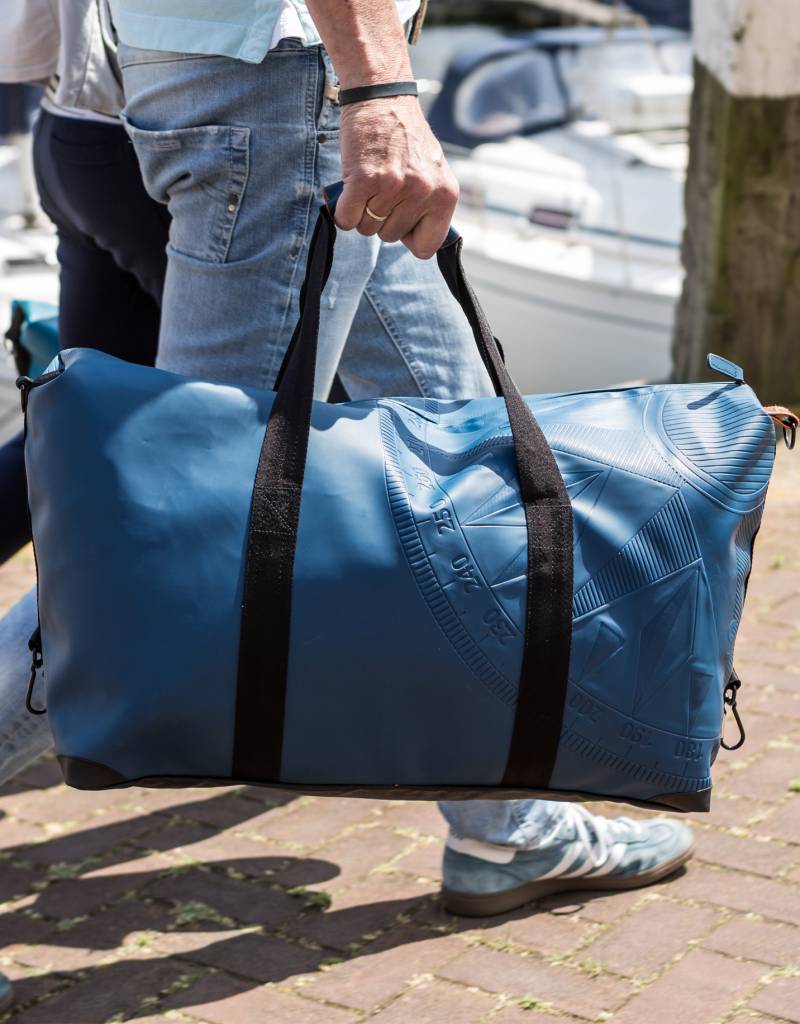 The dark blue Let's Get Lost Travelbag is both elegant and bold. The embossed compass design makes it the ultimate travel statement piece!