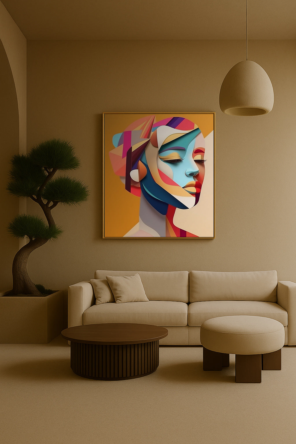 A bold study in contrast and calm, Inner Geometry captures the balance between inner stillness and external expression. This portrait...